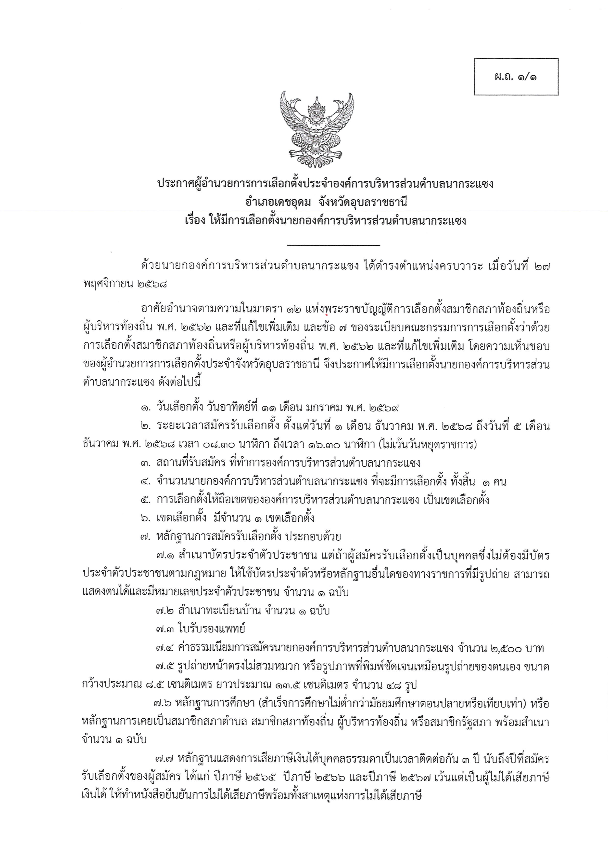 ประชาสัมพันธ์การรับสมัครการเลือกตั้งสมาชิกสภาองค์การบริหารส่วนตำบลนากระแซงและนายกองค์การบริหารส่วนตำบลนากระแซง