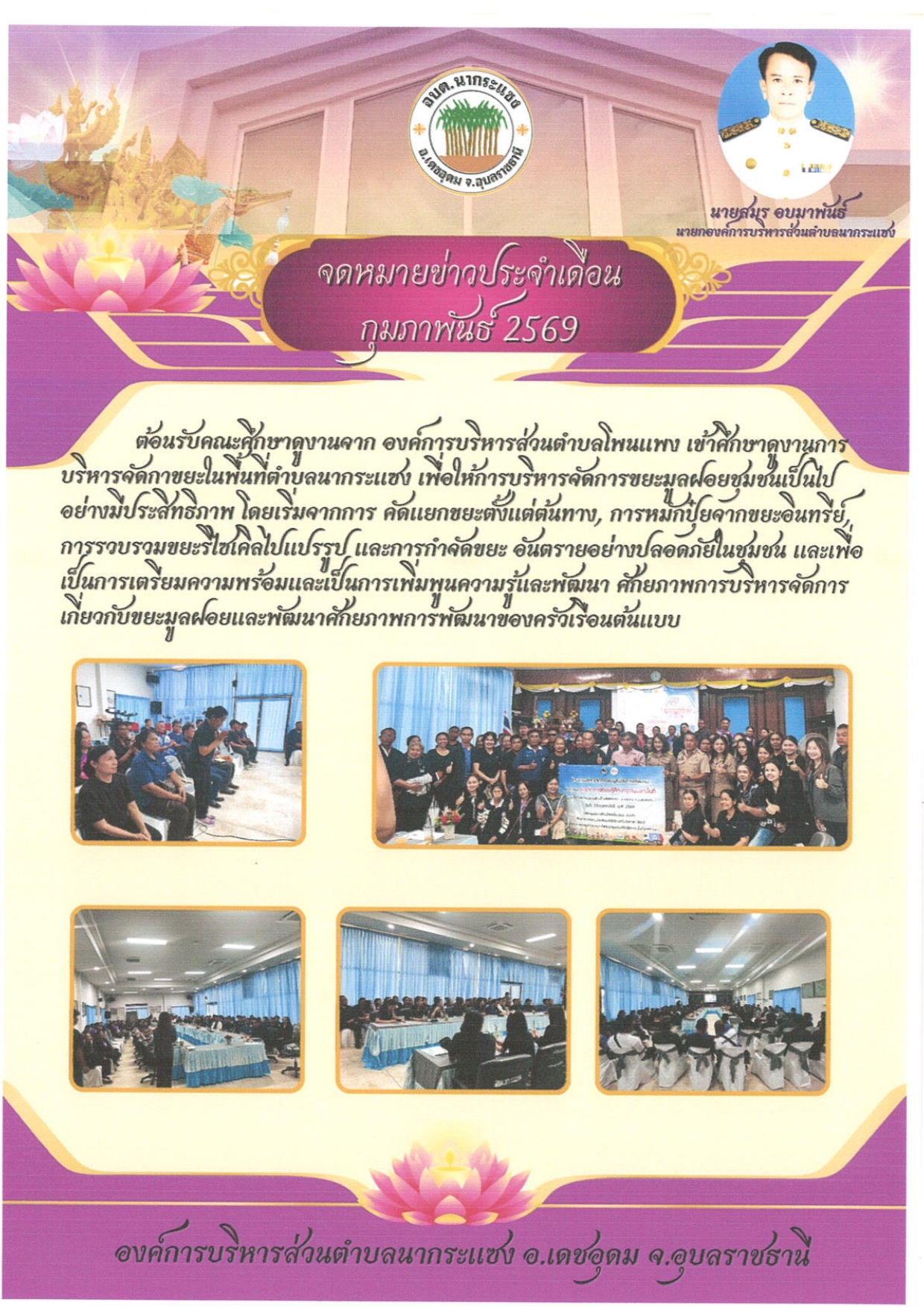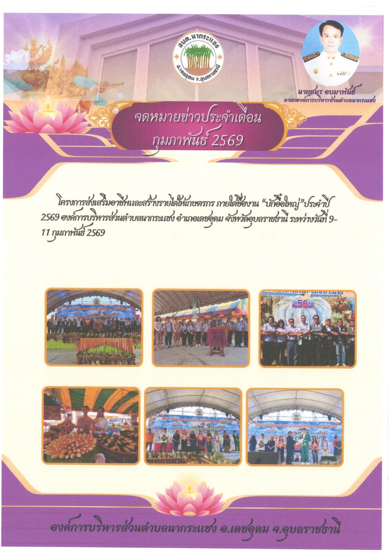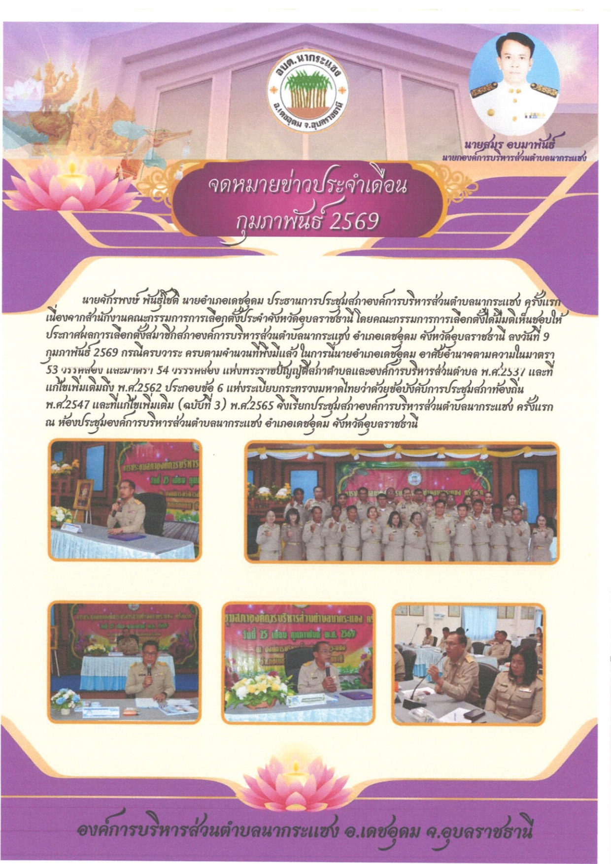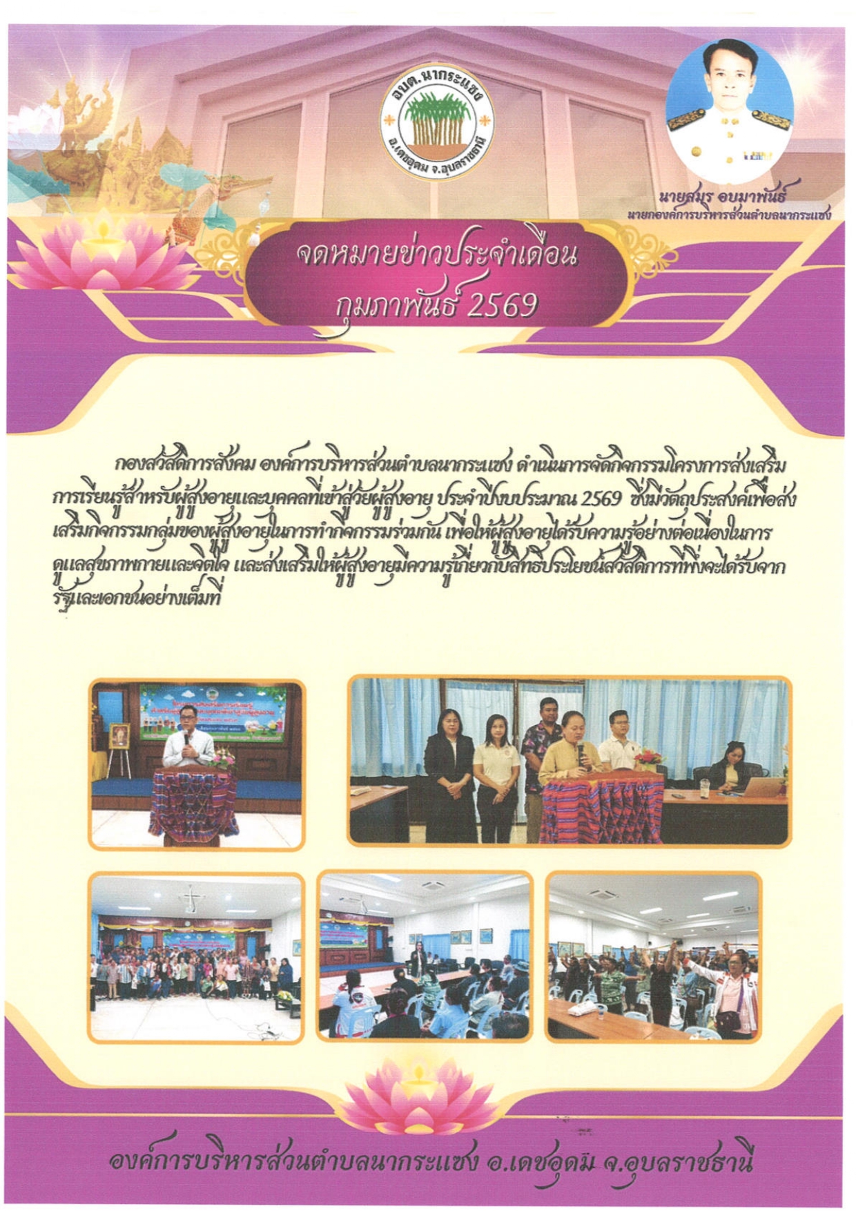 วันพุธ, 04 มีนาคม 2569 09:05ันที่ 25กุมภาพันธ์ 2569 เวลา 09.00 น. ประชาสัมพันธ์จดหมายข่าว ประจำเดือนกุมภาพันธ์ พ.ศ.2569 องค์การบริหารส่วนตำบลนากระแซง