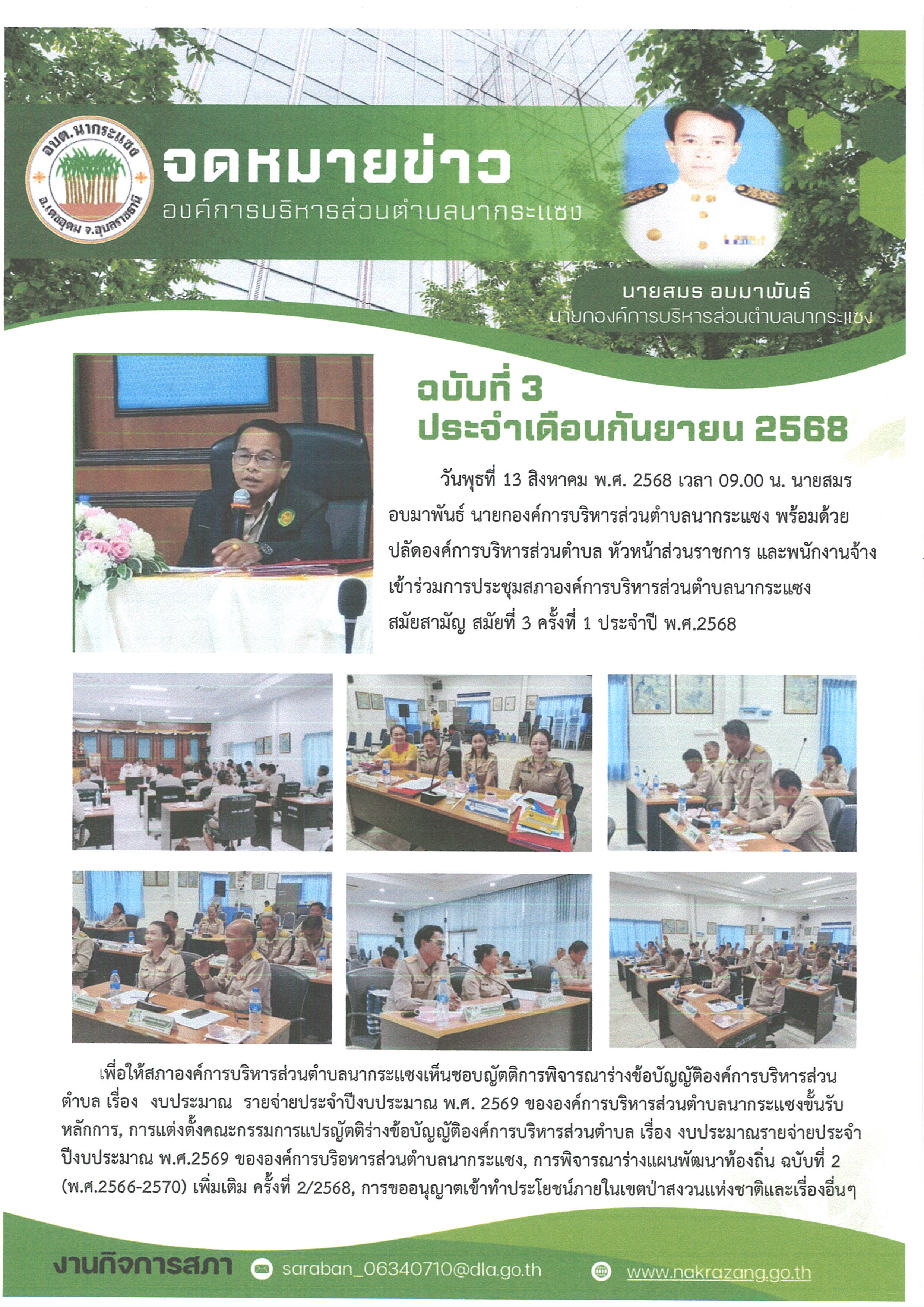 จดหมายข่าวประชาสัมพันธ์ งานกิจการสภาองค์การบริหารส่วนตำบลนากระแซง อำเภอเดชอุดม จังหวัดอุบลราชธานี ประจำเดือนกันยายน-ตุลาคม 2568