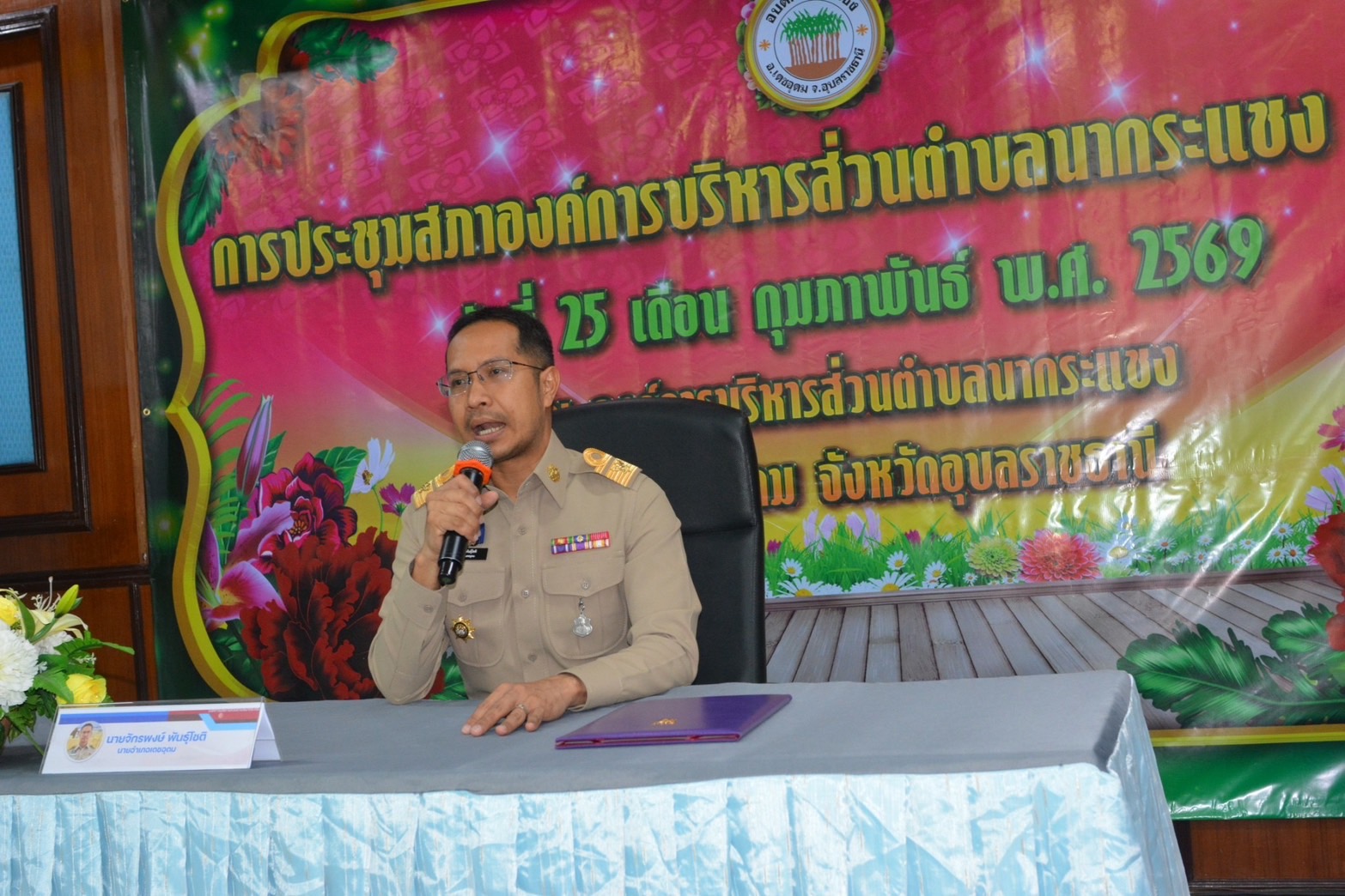 วันพุธ, 25 กุมภาพันธ์ 2569 15:40ันที่ 25กุมภาพันธ์ 2569 เวลา 09.00 น. นายจักรพงษ์ พันธ์ุโชติ นายอำเภอเดชอุดม ประธานการประชุมสภาองค์การบริหารส่วนตำบลนากระแซง ครั้งแรก เนื่องจากสำนักงานคณะกรรมการการเลือกตั้งประจำจังหวัดอุบลราชธานี โดยคณะกรรมการการเลือกตั้งได้มีมติเห็นชอบให้ประกาศผลการเลือกตั้งสมาชิกสภาองค์การบริหารส่วนตำบลนากระแซง อำเภอเดชอุดม จังหวัดอุบลราชธานี ลงวันที่ 9 กุมภาพันธ์ 2569 กรณีครบวาระ ครบตามจำนวนที่พึงมีแล้ว ในการนี้นายอำเภอเดชอุดม อาศัยอำนาจตามความในมาตรา 53 วรรคสอง และมาตรา 54 วรรรคสอง แห่งพระราชบัญญัติสภาตำบลและองค์การบริหารส่วนตำบล พ.ศ.2537 และที่แก้ไขเพิ่มเติมถึง พ.ศ.2562 ประกอบข้อ 6 แห่งระเบียบกระทรวงมหาดไทยว่าด้วยข้อบังคับการประชุมสภาท้องถิ่น พ.ศ.2547 และที่แก้ไขเพิ่มเติม (ฉบับที่ 3) พ.ศ.2565 จึงเรียกประชุมสภาองค์การบริหารส่วนตำบลนากระแซง ครั้งแรก ณ ห้องประชุมองค์การบริหารส่วนตำบลนากระแซง อำเภอเดชอุดม จังหวัดอุบลราชธานี